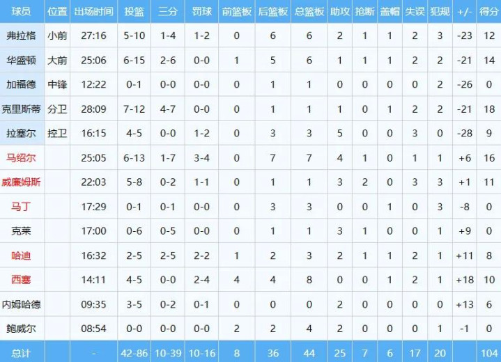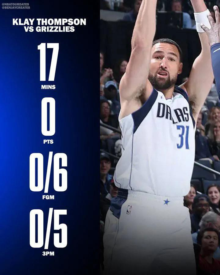 What? Can you lose against an opponent who is on the verge of falling apart? Cool, the Mavericks lost to the Grizzlies 104-118... The Mavericks team data are as follows: The Grizzlies team data are as follows : Thompson's statistics are too eye-catching. He made 0 of 6 shots in this campaign, including 0 of 5 three-pointers. He did not score any points and only received 1 rebound, 3 assists and 1 steal. His plus-minus value of +9 is quite good. In fact, what should be more concerned about is that this guy's name appears in the second team, and he has played as a substitute for two consecutive games. Thompson was in bad form and could only play as a substitute. Thompson left the Warriors and joined the Mavericks. Has he ever thought about his current situation? So far this season, Thompson has averaged 20 minutes per game, scoring 7.6 points, 2.9 rebounds, 1.9 assists and 1.2 turnovers, with three shooting percentages of 31.6%, 26.4% and 10. 0%, his best three-pointers totaled 14 of 53. The four-time marksman who once defeated the entire NBA has become an ice shooter. The contract he is executing expires in the summer of 27, and his salary in the past two seasons totals 34.13 million US dollars. In fact, the Mavericks have already considered giving up Thompson and will explore the potential return of sending him away before next year's trade deadline. Thompson, 35, has a gloomy future. Where should he go? Talking back to the Mavericks, they are last in the Western Conference with 2 wins and 7 losses so far, are last in the league in offensive efficiency& and average points per game, are second to last in the league in three-point shooting percentage, are third to last in the league in assists, etc., which shows that Although it is the most disappointing team this season, "Son of America" Flagg's performance is far less than expected. During this period, he averaged 14.1 points, 6.6 rebounds, 2.7 assists and 1.1 steals per game, with two shooting percentages of 40.4% and 28.6%. However, we can understand the Mavericks a little bit. The outside core Irving has still not fully recovered from the anterior cruciate ligament tear in his left knee. The inside core Brother Big Eyebrow has been suspended for four consecutive games due to a strained left calf. A team that does not play dual-core will inevitably be in trouble. It is said that since the Mavericks traded away Doncic, there has been a continuous wave of injuries, and the full body is still far away. This may be punishment for their waste of resources.