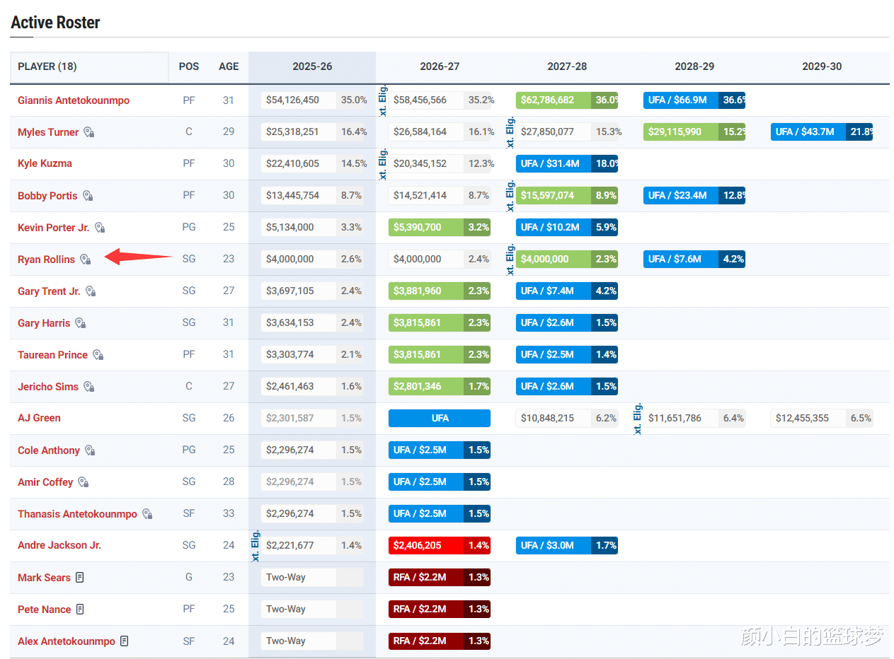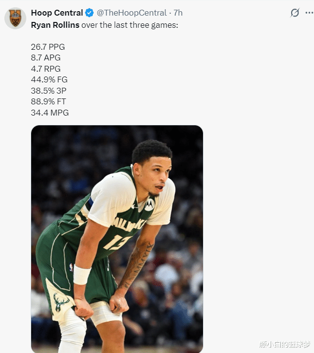 On November 23, the Bucks defeated the Pistons 116-129. The Bucks suffered a four-game losing streak, while the Pistons won 12 consecutive games. Giannis continued to miss the game due to injury, and the game turned into a drama between Rollins VS Cunningham. The confrontation between the two became the only highlight of the game. The official NBA promotional poster before the game features Cunningham and Rollins. Isn’t it a bit ironic? One is a superstar in the league, one is a little-known role player, one has a five-year maximum salary of 260 million, and the other has a three-year low-cost contract of 12 million. In 34 minutes of the game, Rollins made 9 of 21 shots, 3 of 8 three-pointers, 24 points, 7 assists, 5 rebounds, 1 steal and 2 blocks, shooting 42.9% from the field and 37.5% from the three-point range. Cunningham played 33 minutes safely, shooting 10 of 18, 3 of 6 three-pointers, 29 points, 10 assists, 8 rebounds, 1 steal and 1 block. His shooting percentage was 55.6% and his three-point shooting percentage was 50%. The performance of the two of them was definitely better than CC. But Rollins has scored 20+ statistics in the last three games, averaging 34.4 minutes per game, 26.7 points, 8.7 assists, and 4.7 rebounds, shooting 44.9% from the field, 38.5% from the three-point range, and 88.9% from the free throw line. For the first time in his career, Rollins scored at least 20+5 assists in three consecutive games. This season Rollins averaged 31.7 minutes per game, 18.6 points, 5.9 assists, 2.9 rebounds, 1.5 steals, and 0.3 blocks. He shot 49.3% from the field and 40.5% from the three-point range. He ranked second in the Bucks in scoring, second in assists, and second in three-pointers with 2.5 three-pointers. Has he become Antetokounmpo's biggest help? Rollins has an annual salary of 4 million this season. He is a player selected by the Warriors with the 44th pick in the second round of 2022. He has been reborn in Milwaukee with the label of a former Warriors player. Previously, his 32 points, 8 assists and 5 three-pointers in a single game against the old team Warriors were also very inspiring (no letters). Isn’t Kuzma embarrassed to have averaged 13 points per game for 22.41 million?