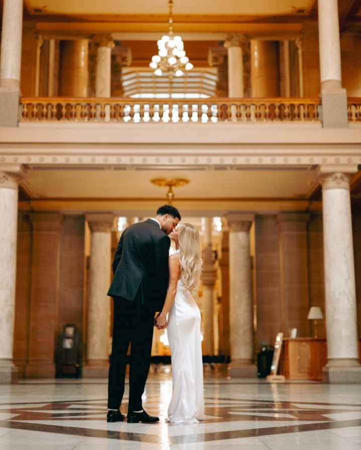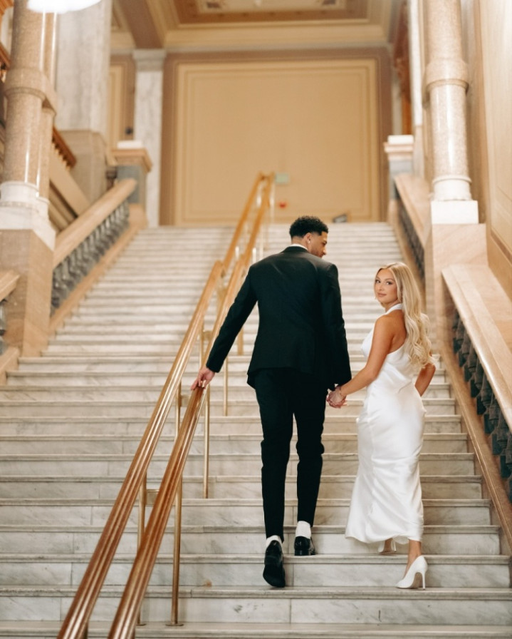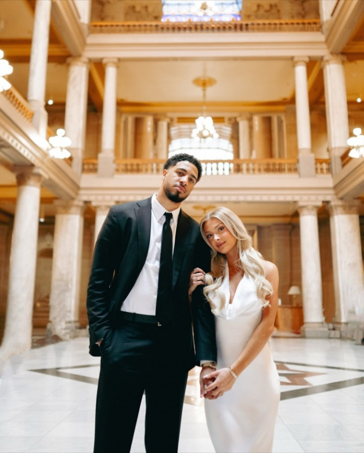November 8 News Today, Pacers star Haliburton and his girlfriend Jade Jones updated social media to post wedding photos, and everyone in the comment area sent their blessings. In July this year, Haliburton successfully proposed to his girlfriend at the basketball stadium of their alma mater, Iowa State University.