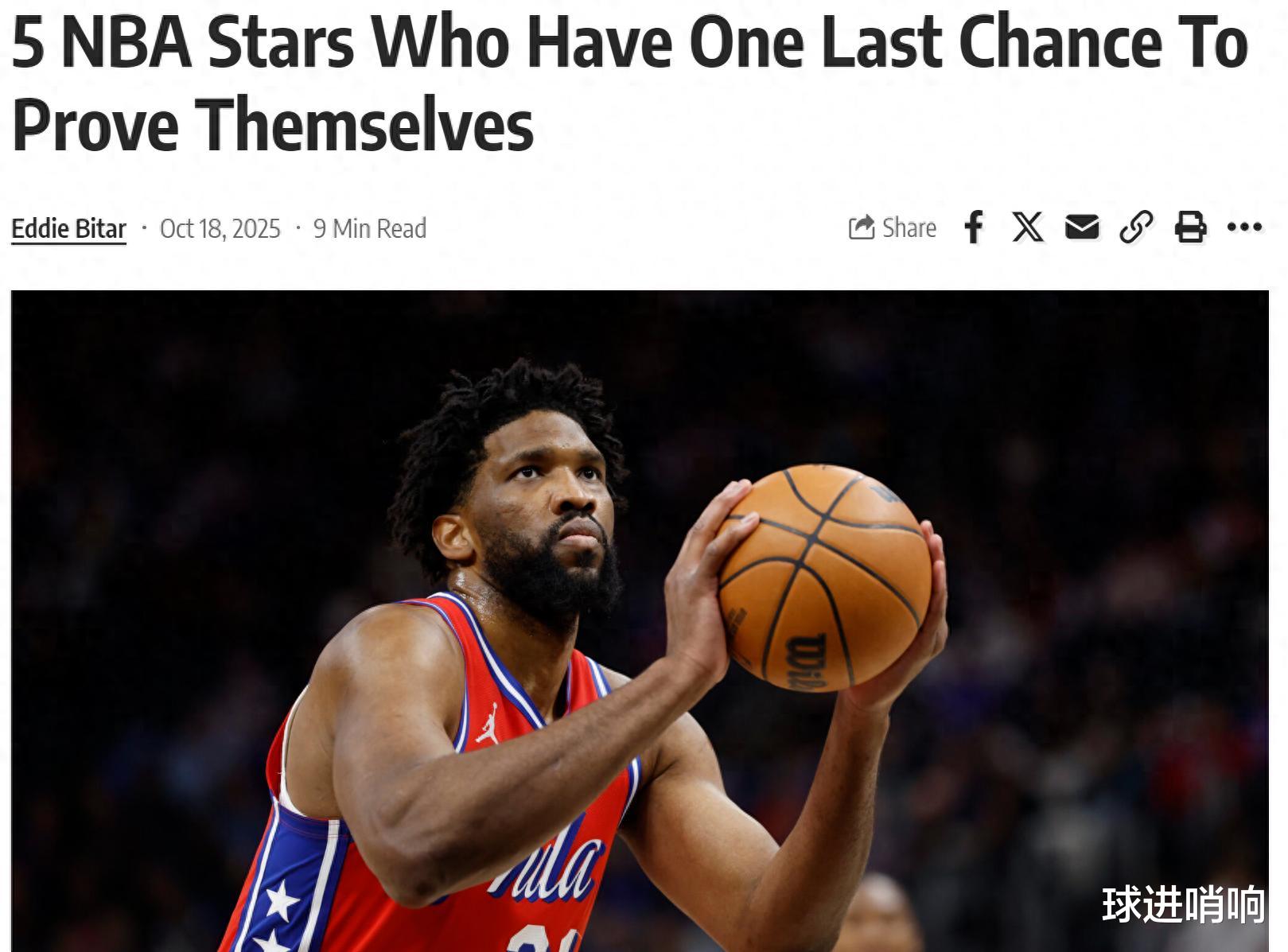 As the preseason comes to an end and the regular season is about to begin, the US media revealed 5 stars who will have their last chance to prove themselves in the new season. Among them, Zion was selected after losing weight, and the 76ers dual-core teamed up to occupy the top two.