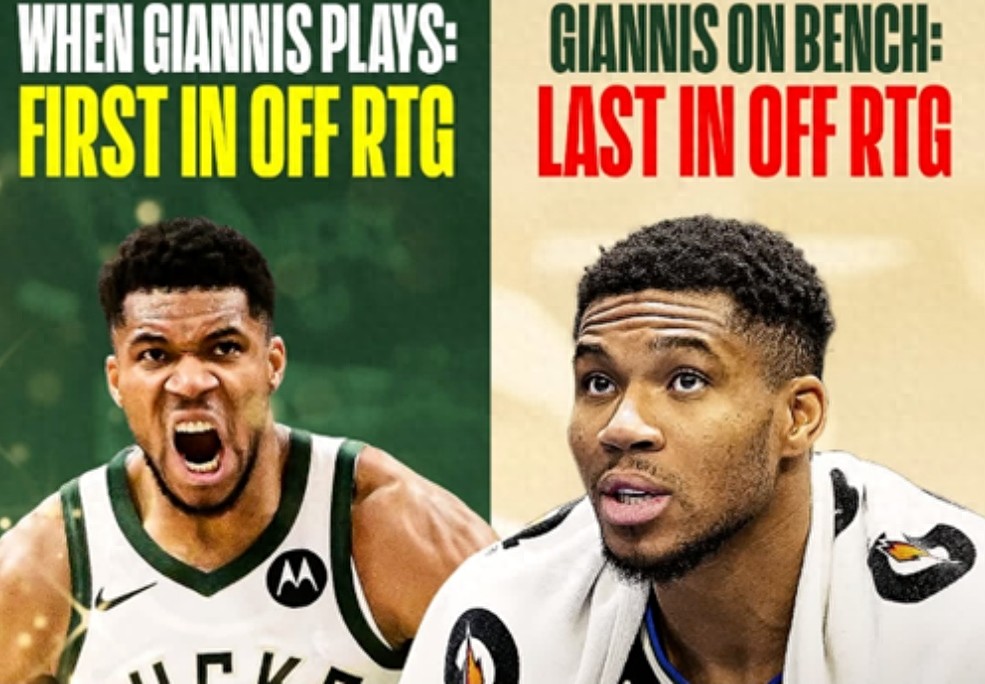 Indispensable! The Bucks are first in the league in offensive efficiency when Antetokounmpo is on the court, not last in the league