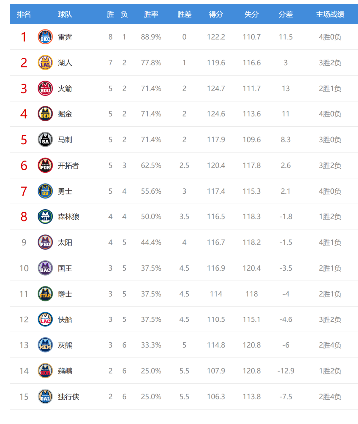 On November 7, 2025, there was only one game in the NBA today. The Suns faced the Clippers at home. After this game, the Western Conference rankings changed. Let’s take a look. In this game, Dillon continued to be absent for the Suns, and Jaylen Green returned for his first career debut with the Suns. Harden and Leonard were absent for the Clippers. In the first half of the game, the Clippers had a slight upper hand due to Zubac's strong performance, and the Clippers led by 3 points at halftime. In the third quarter, the Suns defeated the Clippers completely, winning by 17 points in a single quarter. After three quarters, the Suns led by 14 points. In the fourth quarter, the Suns quickly expanded their advantage, and the point difference reached 25 points. Jaylen Green clocked out, and the Clippers' bench recovered some points. In the end, the Suns defeated the Clippers 115-102. Jaylen Green only played 23 minutes, scoring 29 points on 10 of 20 (6 of 13 three-pointers), 3 rebounds, 3 assists and 2 steals, with a plus-minus of +30. His first show was perfect. Booker made 10 of 22 shots (3 of 7 three-pointers) and scored 24 points, 6 rebounds, 7 assists and 3 steals. Allen made 7 of 13 shots (4 of 9 three-pointers) and scored 18 points with 3 rebounds, 4 assists and 3 steals. O'Neal made 6 of 11 shots (5 of 10 three-pointers) and scored 17 points, 4 rebounds and 2 assists. Ma Wei scored 13 points, 10 rebounds and 2 steals on 4 of 8 shots. Zubac played 27 minutes, scoring 23 points, 11 rebounds, 2 assists and 2 steals on 8-of-14 shooting. Christie scored 17 points on 5-of-7 shooting (2 of 3 three-pointers), 2 rebounds and 3 assists. Si scored 13 points, 4 rebounds and 1 assist on 5-of-11 shooting, Bogdan scored 12 points, 4 rebounds and 5 assists on 3-of-8 shooting. Bill performed poorly, playing 20 minutes, 5 points, 1 rebound and 1 assist on 2-of-14 shooting, 2 turnovers, and a plus-minus value of -23. After this game, the Suns recorded 4 wins and 5 losses, and their ranking rose from 10th to 9th in the Western Conference. After the Clippers lost, they suffered a 3-game losing streak, with a record of 3 wins and 5 losses, and their ranking dropped from 9th to 12th in the Western Conference. The Clippers have built a seemingly luxurious lineup after repeated operations this summer. The industry is looking forward to them. Unexpectedly, the Clippers' performance after the start of the game was far lower than expected. The reason is that the new players Bill, Paul, and Luo performed poorly. Although Collins performed well, Tyronn Lue did not reuse him, did not let him start, and did not play much. The Clippers' so-called lineup depth became empty talk. What's worse is: Bill, Paul, and Daluo may not be able to recover from their condition. The reason for Bill's poor condition is that injuries have caused him to lose his explosive power, while Paul and Daluo are caused by their age. The industry's view on this is: the Clippers have hit the rocks early. The Clippers' reinforcement operation this summer may have failed, but the Lakers' reinforcement operation this summer was a great success. The three new players Ayton, Laravia, and Smart have played better and better since the start of the game. This makes the Lakers' fault tolerance rate amazing. In the East They can maintain a good winning rate when Cic and James don't play, and they can still win (defeating the Trail Blazers) when Doncic, James, and Reeves don't play. The Lakers currently have a record of 7 wins and 2 losses, and have recently won 5 consecutive games, ranking second in the Western Conference. In sharp contrast to the Lakers' rapid progress is the Mavericks. They used the No. 1 pick in this year's draft to select the amazingly talented Flagg, and then introduced Russell. Even if Irving cannot start the game, their lineup depth is among the top in the league. I thought they could produce good results, but I didn't expect the Mavericks to have a poor record. Currently ranked 15th in the Western Conference with 2 wins and 6 losses, the Mavericks may miss the playoffs again this season. The latest rankings of the Western Conference after today’s game are as follows: