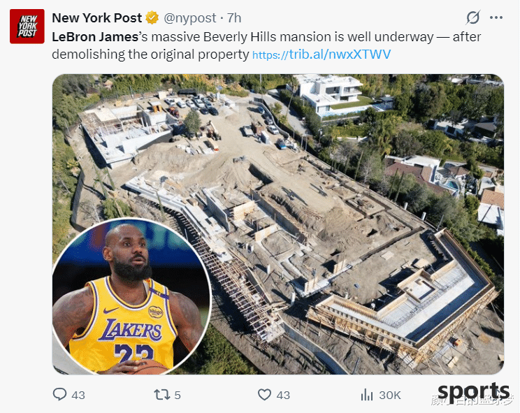 On June 13, Lakers' Record Anthony Laurien revealed that LeBron James has no plans to reduce his salary, and his team is considering breaking out of the player option and signing a new contract again. On June 14, Anthony Laurien continued to reveal that James is expected to jump out of next season's player option and sign a two-year contract with the Lakers that is close to the maximum salary, including the veto of the transaction. There is still a player option in the second year. This contract is similar to the contract signed with the Lakers last summer, and is also a 1+1 contract with close to the maximum salary. LeBron's player option next season is 52.62 million. If you re-sign a new contract, it will definitely be a huge contract with an average salary of more than 50 million. On June 14, US media New York Post revealed that the reconstruction of Lakers star LeBron James's luxury house in Beverly Hills has begun to take shape. The frame of this 13,000 square foot super luxury house has been completed, and a small villa that can be lived in is built next to it. This mansion is a super mansion purchased by LeBron in 2020 for 37.6 million yuan. This is the second property LeBron purchased in Los Angeles. The first is a mansion that spent 52 million yuan in 2018, but LeBron will eventually demolish and rebuild the mansion of 37.6 million yuan. The demolition and reconstruction starts in June 2023 and is expected to be completed in five years. According to the US media, the rebuilt property will become James' main residence, where he will enjoy an infinity pool, a home theater, a wine cellar and an indoor basketball court. LeBron is the only player among active players with a total income of more than 1 billion yuan. His total income is US$1.2 billion. It is normal for such a wealthy person to spend a lot of money. LeBron James is a famous philanthropist, entrepreneur and athlete. Text/Yan Xiaobai: LeBron Observation