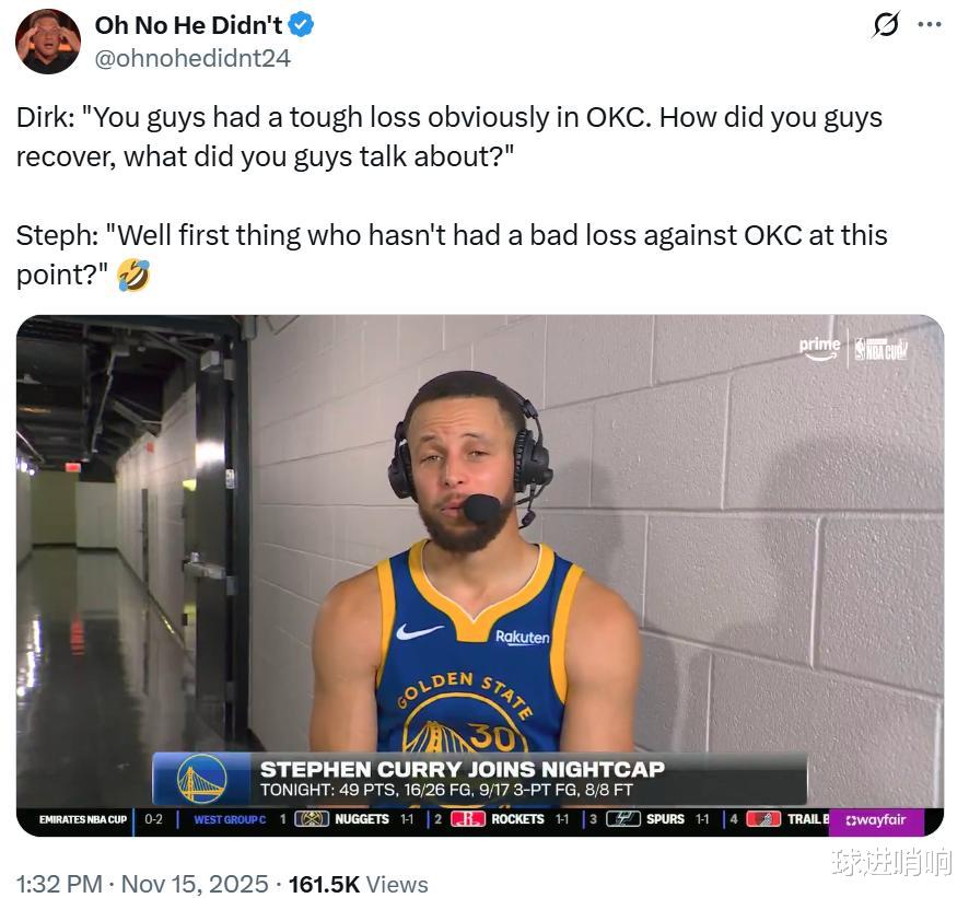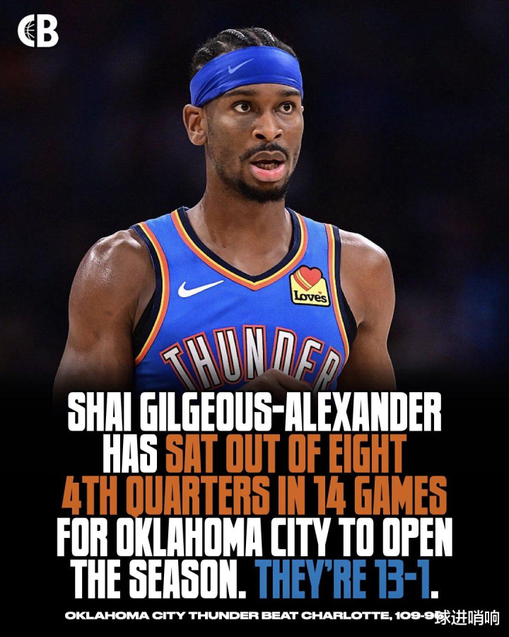 The defending champion Thunder started the season with 8 consecutive victories and then won 5 consecutive victories. It has become the norm for core Alexander to score 30+ points in the third quarter! Facts have proved that what Curry said in the interview after scoring 49 points was absolutely correct. The Thunder won 5 consecutive victories After a series of bloodbaths against the Warriors and Lakers, the Thunder's 4-game winning streak ushered in a contest with the Hornets. The latter, as a loser for many seasons, relied on its excellent draft vision to win several high-quality rookies this season, but its competitiveness was still limited. In the end, the Thunder defeated the Hornets 109-96 and won 5 consecutive victories without any blood. In this way, after winning 8 consecutive games at the beginning of the season, the Thunder won another 5 consecutive games. In the first 14 games of the season, they had an impressive performance of 13 wins and 1 loss, and continued to lead the rankings with an absolute advantage. The only game they lost during this period was the second back-to-back game, which was narrowly lost by 2 points due to physical problems to the Trail Blazers, who emphasized a rapid transition between offense and defense. SGA three-quarter clocking has become the norm The important reason why the defending champion Thunder delivered such a terrifying record performance is that after experiencing the baptism of winning the championship, Alexander, the core of the team who became a stable 30+ scorer last season, evolved again and became a terrifying and stable 30+ scorer in three quarters. Alexander played 29 minutes in this game and once again checked in three quarters. He made 13 of 19 shots and easily scored 33 points, 4 rebounds, 7 assists and 2 steals. In the first 14 games of the season, Alexander has checked in three quarters 8 times. Obviously, clocking out in the third quarter has become the norm for the Thunder and Alexander, and it also intuitively demonstrates the terrifying dominance of the defending champion Thunder. It is worth mentioning that Alexander, who scored 30+ points in three quarters of this game, only got 5 free throws. He is getting rid of his reliance on free throws. This is the fourth time since the start of the season that Alexander has scored 30+ free throws in a single game without taking more than 5 free throws, ranking first in the league. From the new generation of free throw king who relied heavily on damage last season to a stable output of 30+ in three quarters this season, Alexander, who has experienced the baptism of the championship, is transforming into the most unsolvable scorer in active service. What Curry said is absolutely correct. Before the start of this game, Curry, who scored 49 points and was interviewed across the United States, once talked about this Thunder team, because the Warriors suffered a 24-point defeat against the Thunder not long ago. In the connection with Nowitzki, Curry was also asked how you quickly completed the psychological construction and rebound after losing to the Thunder. What were the specific discussions internally? Curry joked with a sincere face: "First of all, what I want to say is, so far, who has not suffered a disastrous defeat against the Thunder?" I can only say that what Curry said is absolutely correct. If you only look at the performance since the beginning of the season, then the Thunder are absolutely the only championship team, and no team can compete with them. Whether it was the Warriors, who were defeated by 24 points, or the Lakers, who were defeated by 29 points, it was not that the two teams were too weak, but that the Thunder team was indeed too strong. You must know that the Thunder's second-leading player Jaylen Williams has not appeared since the beginning of the season. The core rotation such as Caruso, Cutter, Jaywe, and Wiggins have also been in and out due to injuries. The current Thunder with 13 wins in 14 games is far from complete. What's even more frightening is that the Thunder will be one of the richest teams in the NBA in the next seven years, holding 13 first-round and 16 second-round picks, and the Thunder management's drafting ability is even more well-known. This means that this Thunder team, which already has a very young core, will continue to welcome new blood with rookie bonus contracts in the future. From the state of the core SGA, to the ridiculously exaggerated personnel structure, and the continuous flow of surprise players brought by excellent draft vision, this Thunder team has the momentum to build a dynasty team.