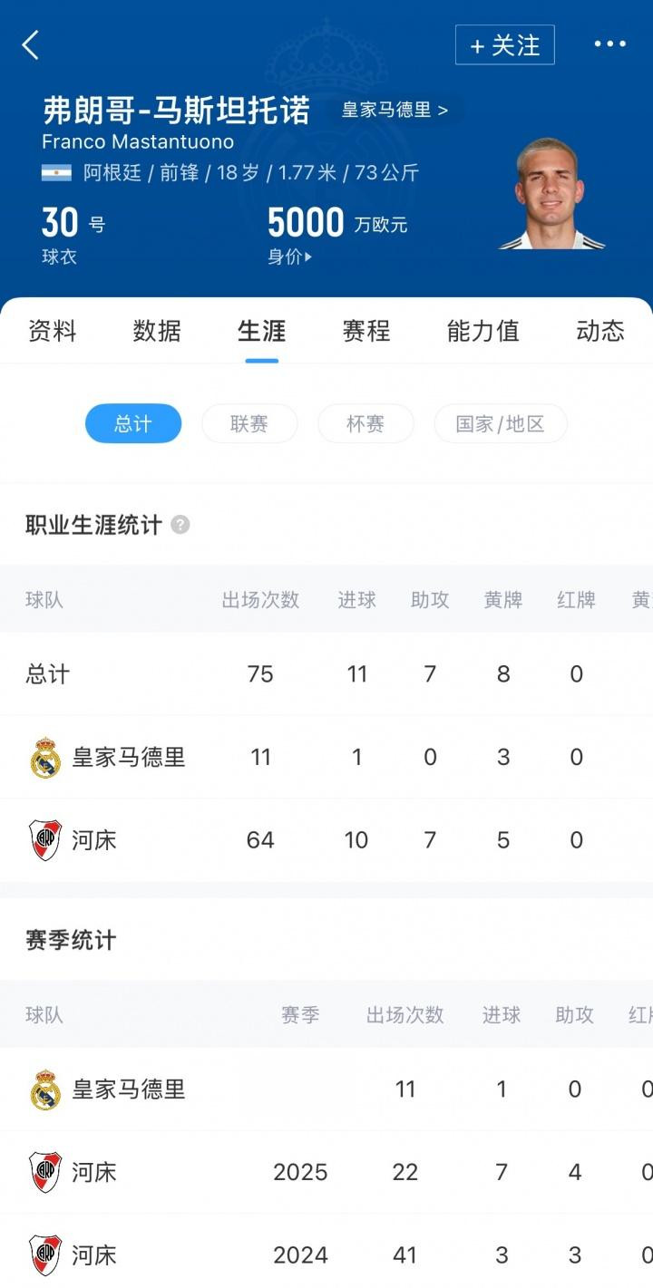 October 28th: Real Madrid defeated Barcelona 2-1 in El Clasico. It is worth mentioning that Mastantono, who has started many times before, did not get a chance to play in this game. The Spanish media "Marca" also talked about the player's recent appearances. According to reports, the 18-year-old was unexpectedly reused by Alonso and has started eight times this season. Alonso also publicly praised the player's performance. But in the past week, Real Madrid has defeated two strong opponents: Barcelona and Juventus. Mastantono did not get many opportunities in these two important games. The Argentine teenager only played 6 minutes against Juventus, and he didn't even play in the El Clasico. After Real Madrid paid 45 million euros for him, Mastantuono joined with momentum and people's expectations. He scored the first goal of his Real Madrid career against Levante, but has been quiet since then: in games against Atletico Madrid, Villarreal and Getafe, he has accumulated only two shots on target and five successful dribbles. Nevertheless, he knows that Alonso values him and he believes that he will get a chance, maybe even in this Saturday's game. But at the same time, he is also aware that he now has to fight hard to regain his starting position.