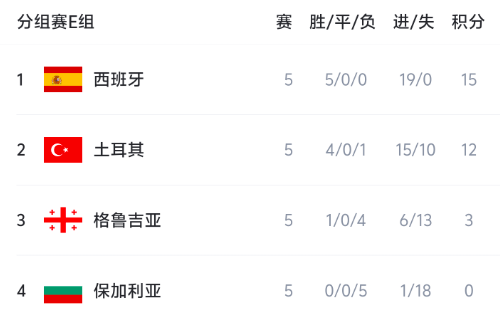 In a focus match of the World Cup European Qualifiers that ended on November 16, Spain swept Georgia 4-0 away from home. After being undefeated in 30 consecutive official games, they have basically locked in a spot in the US-Canada-Mexico World Cup. Although Barcelona's genius Yamar was absent due to injury, Spain was still in a state of crushing when facing Grunia, ranked 70th in the world. In just 11 minutes, Oyarzabal took a penalty kick and easily broke the deadlock for Spain. In the 22nd minute, Ruiz assisted Subimendi to expand his advantage. In the 34th minute, Ferran Torres easily scored in front of the goal and rewritten the score to 3-0. In the 63rd minute, Ferran Torres returned the favor and scored for Oyarzabal who assisted him, allowing the latter to score twice in this game. After defeating Georgia 4-0, the Spanish team achieved an unbeaten record of 25 wins and 5 draws (a penalty shootout) in the last 30 official games, breaking the team's record. The Spanish team became the fourth team in the history of international football to remain undefeated in 30 consecutive non-friendly matches. After this round of matches, Spain ranked first in Group E with 15 points after winning 5 games in the qualifiers, scoring 19 goals and even not conceding a goal. Currently, Spain leads Türkiye, which also won this round, by 3 points. Although Spain missed the qualifying round one round in advance, Spain is far ahead of Türkiye in terms of goal difference. The latter scored 15 goals and conceded 10 goals, with a goal difference of only 5. In the final round, Spain will face Turkey directly at home. As long as it does not lose the game by more than 7 goals, Spain will directly advance to the World Cup finals.