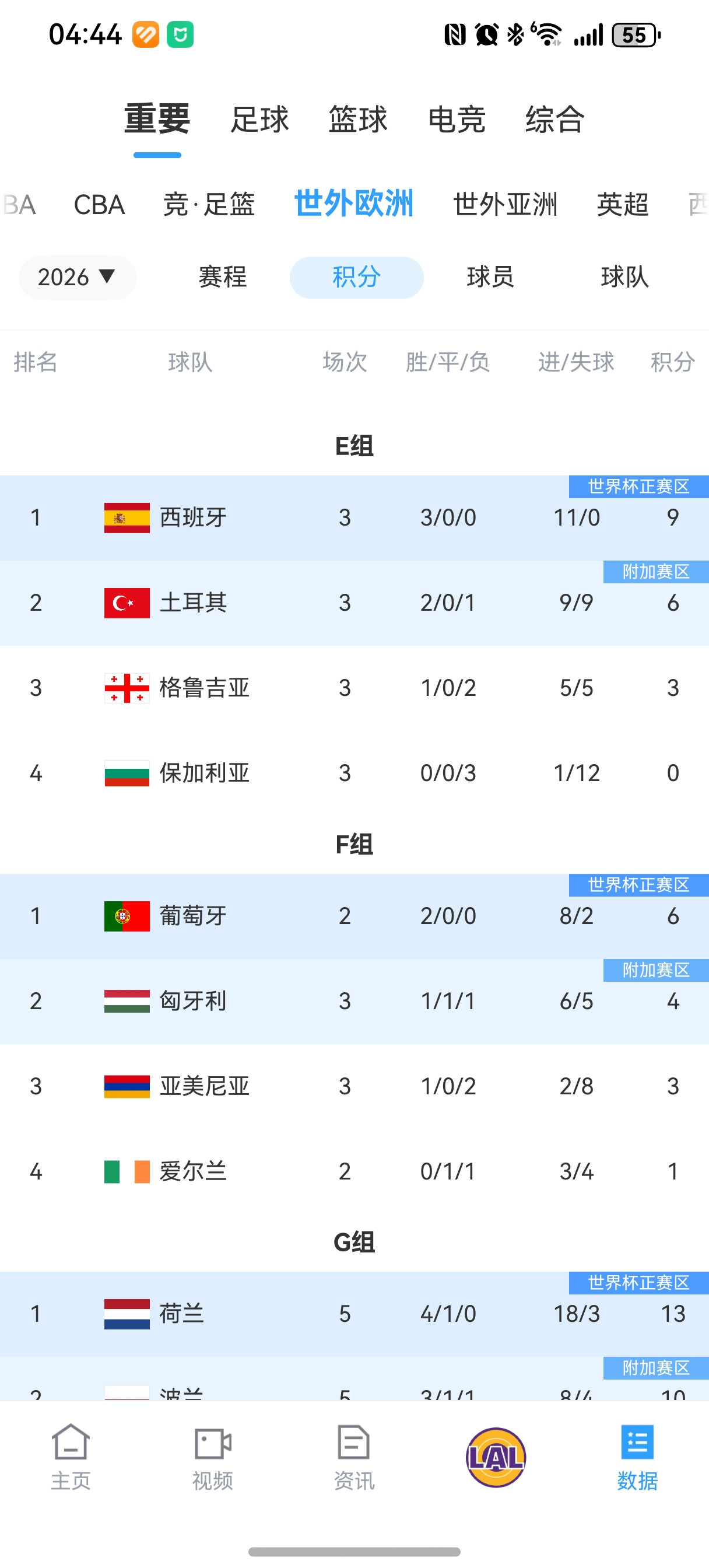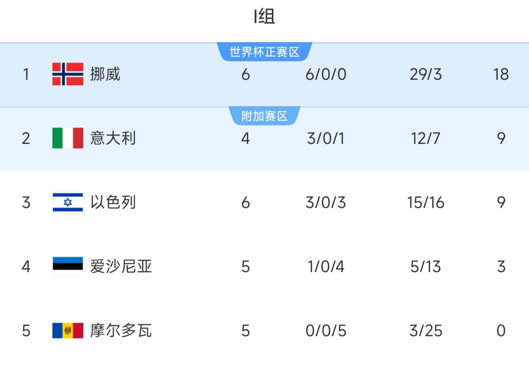 In the early morning of October 12, the first group stage of the 2025 World European Qualifications continued. Haaland easily scored in Group I, helping Norway beat Israel 5-0, ranking first with a complete victory record; in another game in Group I, Italy defeated Estonia 3-1, ranking small with 12 points with 4 wins and 1 loss. Group 2; Pino opened the scoring in Group E, Oyarzabal scored with a blast, Spain defeated Georgia 2-0, and continued to top the list with 3 wins and 0 losses in the group stage; Portugal in Group F fell into a tough battle, Ronaldo missed a point, but Neves made a buzzer-beater before the end and finally defeated Ireland 1-0, temporarily ranking first in the group stage with 3 consecutive wins. Serbia in Group K suffered an upset loss to Albania 0-1, while Türkiye defeated Bulgaria 6-1 in Group E's other match. With the end of these games, the latest standings of the World European Qualifiers are released: